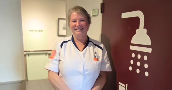 Anne-marie (61) werkt al sinds 2001 bij ViVa! Zorggroep en maakte de ontwikkeling van de GRZ (Geriatrische Revalidatiezorg) van dichtbij mee. Wat begon in het ziekenhuis, groeide uit tot de revalidatieafdeling zoals die nu op Meerstate bestaat. Ze zag het ontstaan, ze groeide mee. En ze koos heel bewust voor deze plek. “Ik kan wel zeggen dat ik nog de enige ben van het oorspronkelijke team uit het ziekenhuis.”