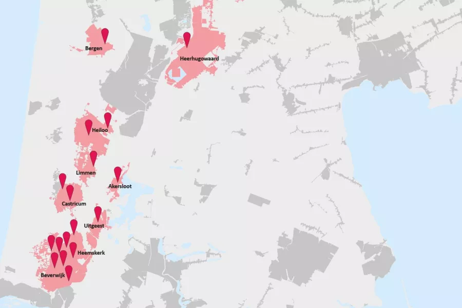 In Kennemerland hebben wij in diverse plaatsen woonzorglocaties. In de afbeelding zie je de verschillende locaties weergegeven. Wil je een gedetailleerde afbeelding bekijken en zien waar jij voor ons kan werken? Klik dan hier.